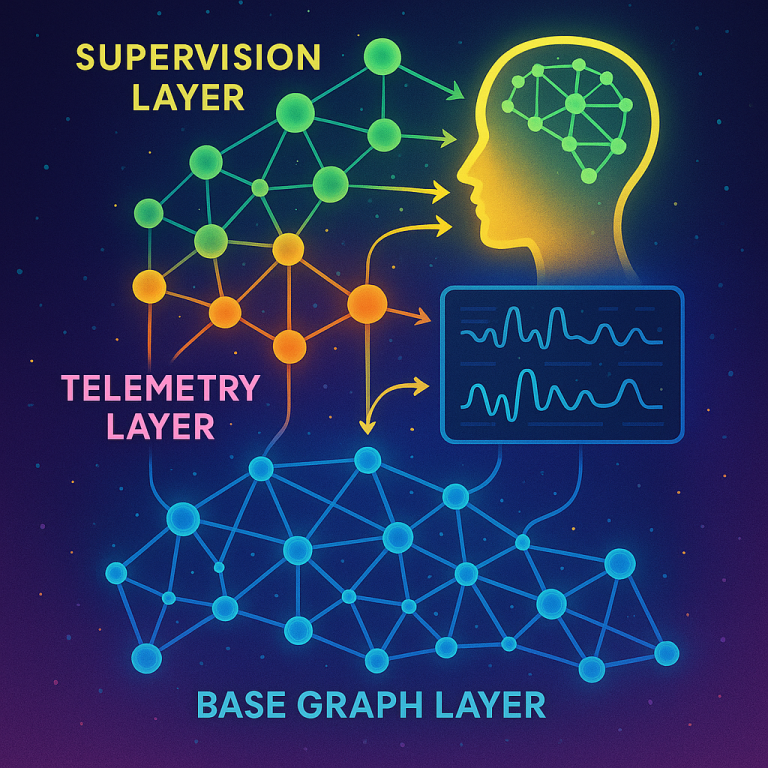 – Supervision Layers: These are the brains of the operation. Supervisory nodes in these layers watch over the network, use the telemetry data to spot problems or opportunities, and take action. They can optimize how thoughts are encoded, decide when to create new nodes, or prune (remove) underperforming ones. There can be multiple supervision layers, each handling different scales—from local tweaks to global system changes.