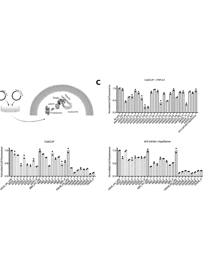 The inventors tested their system on several tough targets, including the KRAS oncoprotein, which is very important in cancer but is usually considered undruggable. They showed that peptides designed with Cut&CLIP could bind to KRAS and lead to its degradation in cells—a major breakthrough. They also showed the system works much faster and with less computer power than older methods based on 3D structures.