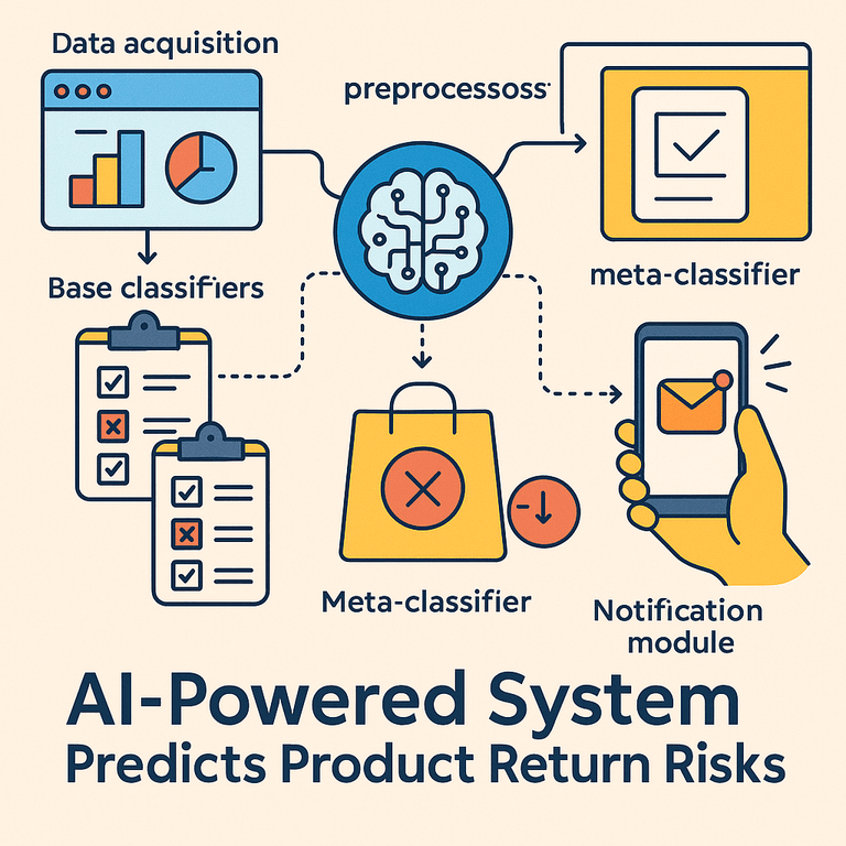 - Several base models (like decision trees, logistic regression, random forests, and gradient boosting) each make their own prediction about whether a product will be returned.