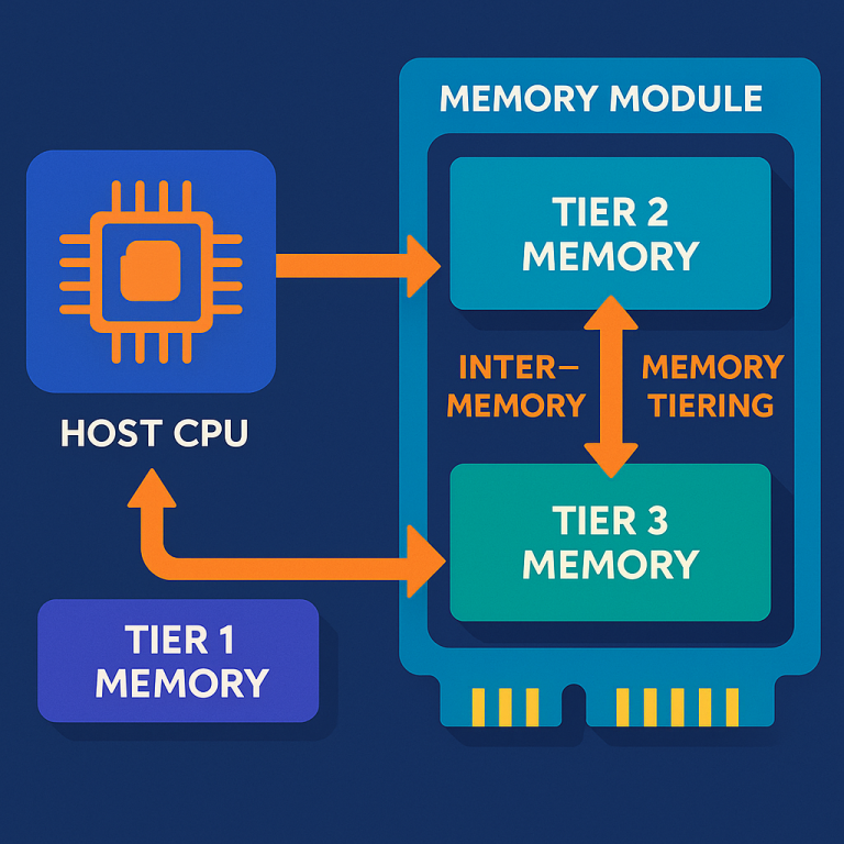 The memory module can run its tiering work on its own, without waiting for the main CPU. For example, the embedded CPU can move cold data from Tier 2 to Tier 3 when space runs low, or promote warm data up when it starts to get used more. At the same time, the host CPU can ask for hot data to be moved to Tier 1.