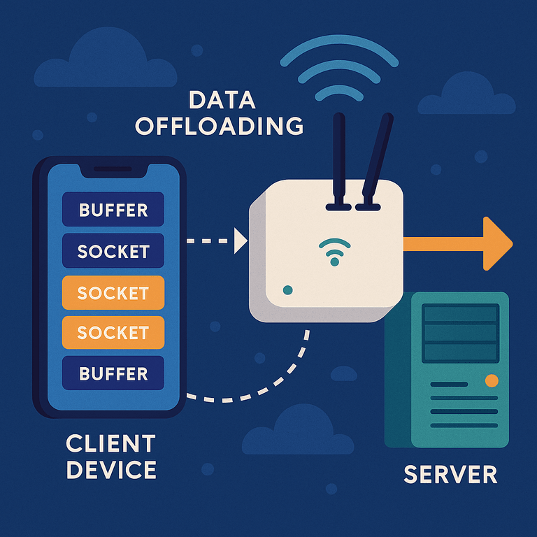 The core idea is simple. When your device (like a phone or laptop) wants to talk to a server on the internet, it sets up a normal connection using the transport layer (TCP or UDP). But before it starts sending lots of data, it also creates a special “pipe” with the access point or modem. Think of this as a private channel just for sharing buffer information.