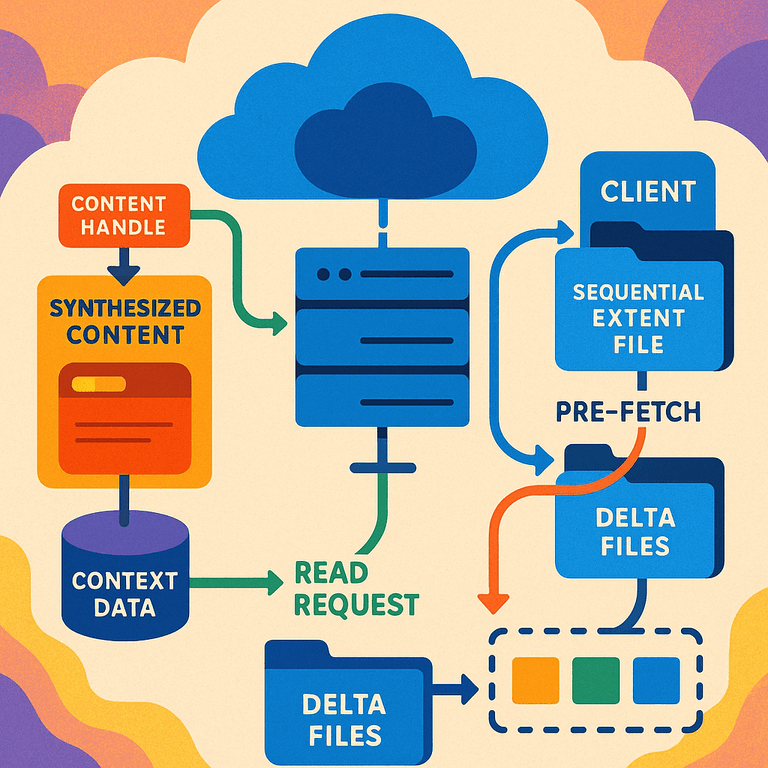 The big win is that the extents are now lined up, one after another. When the client reads the new file, it’s just like reading a regular file from start to end. The prefetch system can load data ahead without guessing, and there’s no wasted work. As the client reads, the server sends the data straight from the synthesized file. When done, the temporary handle is destroyed, and there’s nothing left to clean up.