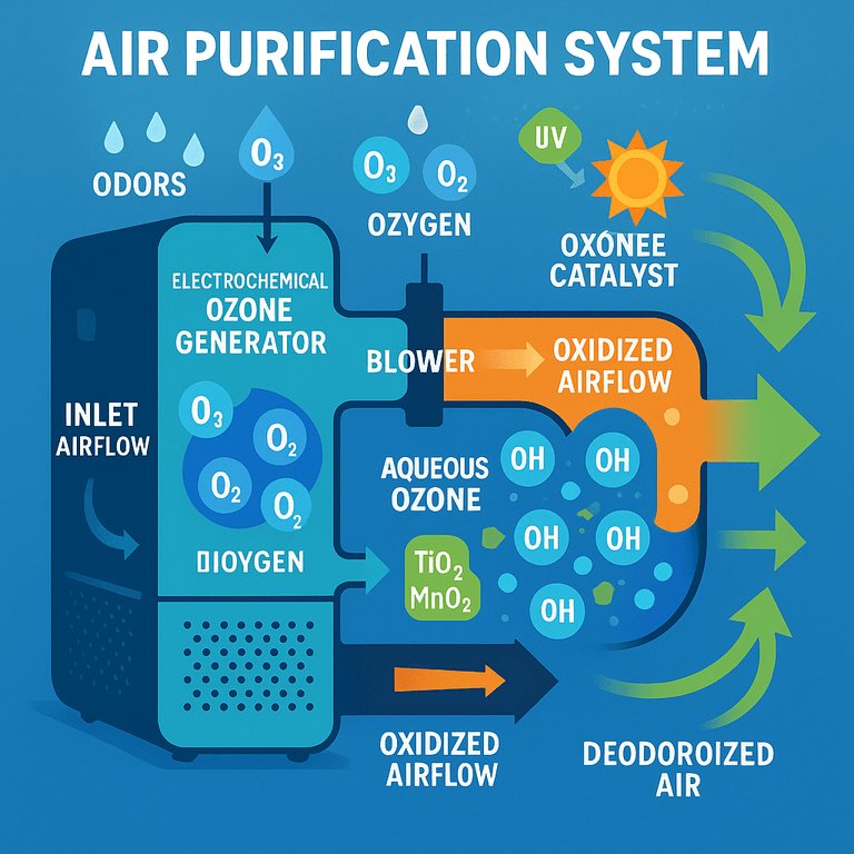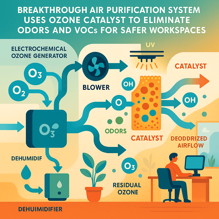 This new air deodorizing system marks a big step forward in how we keep indoor air fresh and safe. By using water from the air, making pure ozone, and harnessing the power of smart catalysts and UV light, it removes odors and pollution without putting people at risk. The careful control of ozone levels, easy maintenance, and smart technology make it perfect for modern homes and businesses alike.