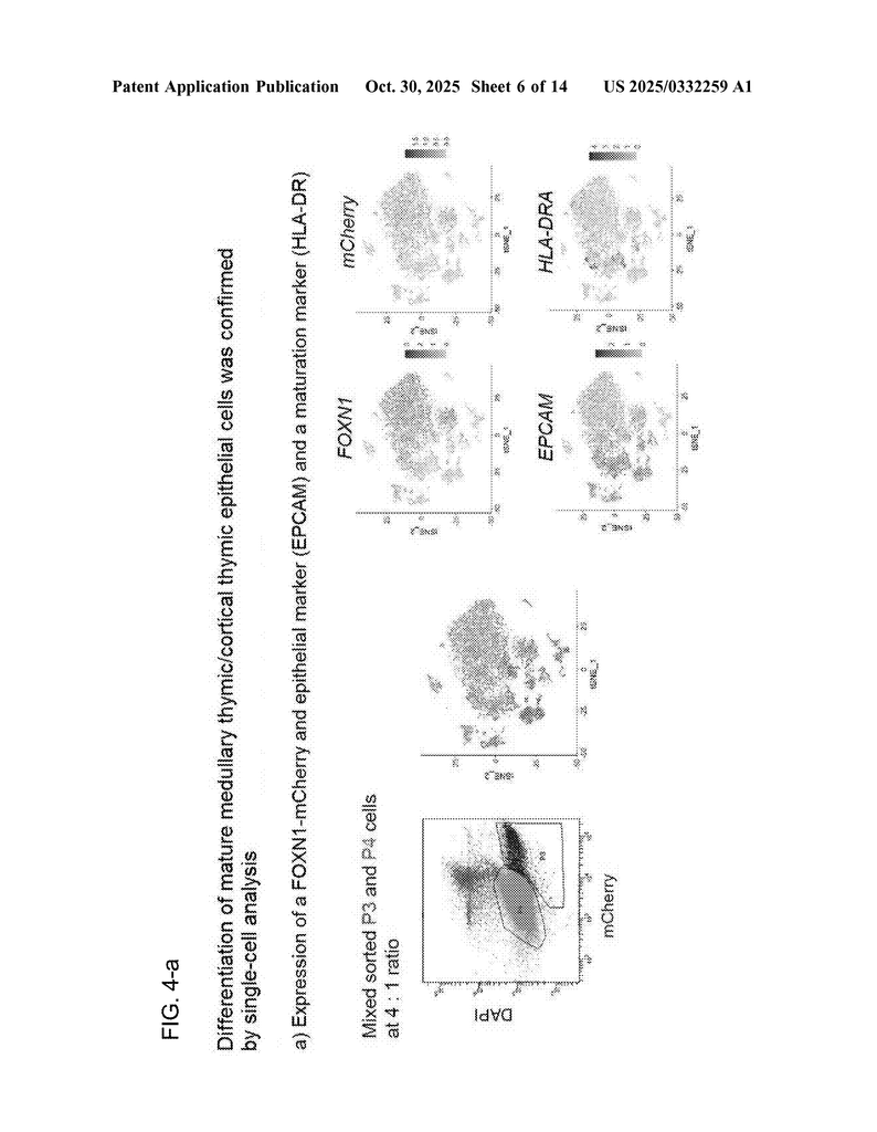 There are other technical details that make this invention stand out. The inventors use careful timing, defined media, and genetic markers to follow the cells’ progress. They establish special reporter cell lines (using a red fluorescent protein called mCherry linked to FOXN1) to track which cells are becoming TECs. They use flow cytometry and gene expression tests to sort and verify the maturity of the TECs they make.