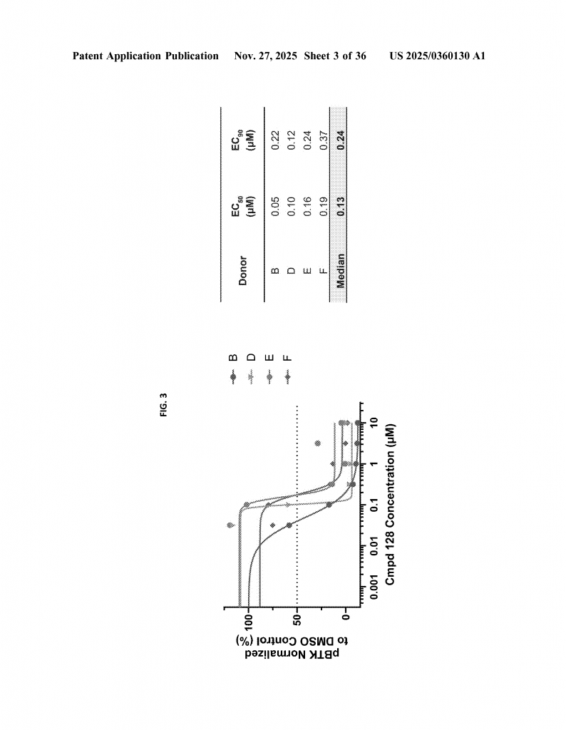 Compound 128 can be given in different doses (like 50 mg, 75 mg, 100 mg, 150 mg, and up to 300 mg, twice a day), so doctors can choose the right strength for each person. The medicine is strong enough to block BTK at very low concentrations (IC50 less than 5 nM), which means you don’t need a huge dose to see an effect.
