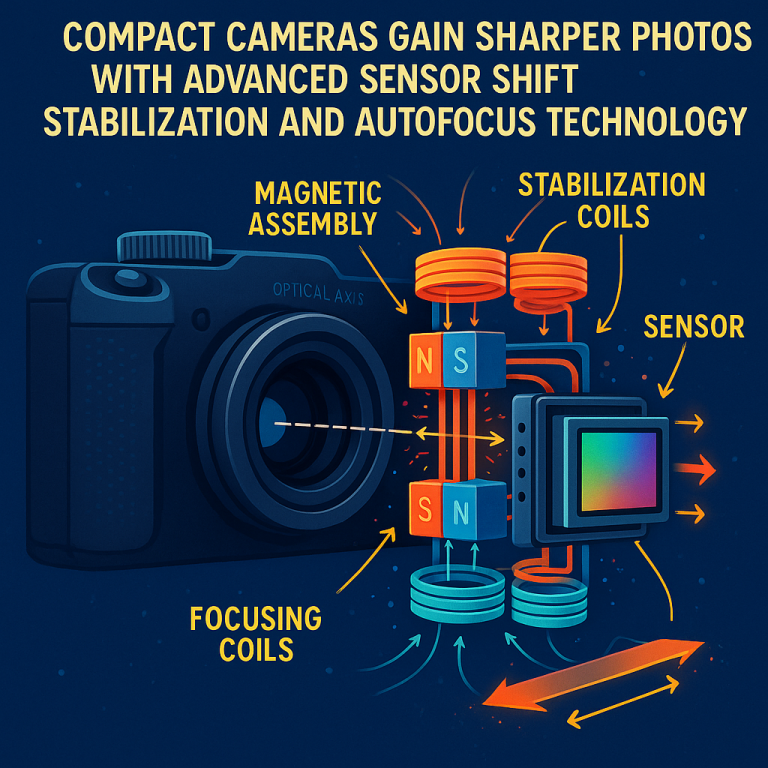 There are two types of coils on the platform: stabilization coils and focusing coils. The stabilization coils are lined up next to one side of each magnet. When the control system senses the camera is shaking (because you moved your wrist or hand), it sends current to the stabilization coils. This pushes the sensor sideways—left, right, up, or down—to cancel out your movement. The result is a sharp, stable picture even if your hand isn’t steady.