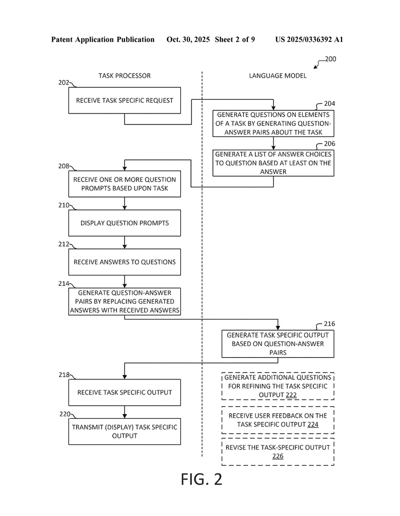 This patent application addresses that exact need. It describes a system where the AI creates questions based on your request, collects your answers, checks if the answers are good enough, and then uses them to finish your task. This approach is meant to make AI work for everyone, not just experts, and helps users get better results with less hassle.