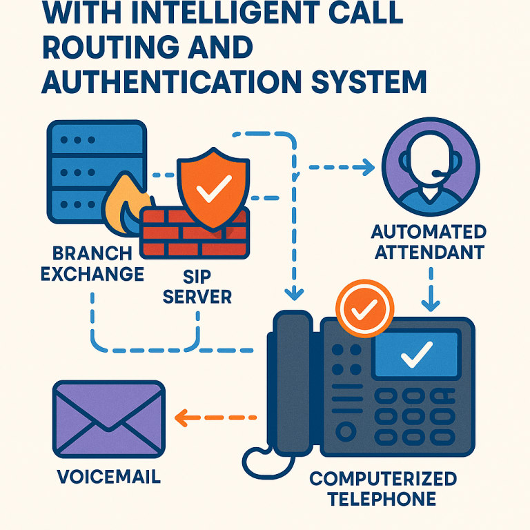 First, there’s a branch exchange system. Think of this as the brain of the phone network. It receives all incoming calls. Then, there’s a session initiation protocol (SIP) server, which helps manage calls, especially over the internet. The SIP server has a firewall to block unwanted traffic. All calls pass through this server, which checks if they should be allowed in.