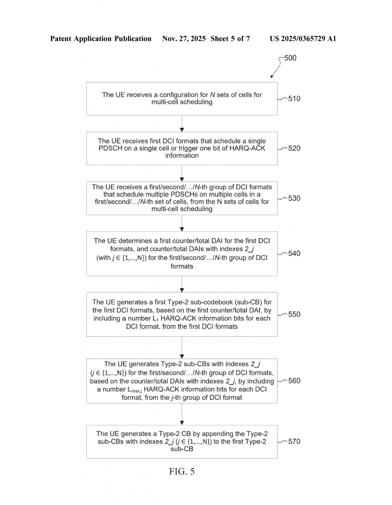 The device needs to tell the network if it received the data correctly. This is done using HARQ-ACK (Hybrid Automatic Repeat Request – Acknowledgement) feedback. The invention includes a smart way to organize this feedback using codebooks. The feedback covers all the scheduled cells and even includes a bit for the smallest-index cell among those not scheduled but still involved (for example, to acknowledge a TCI update or special state).