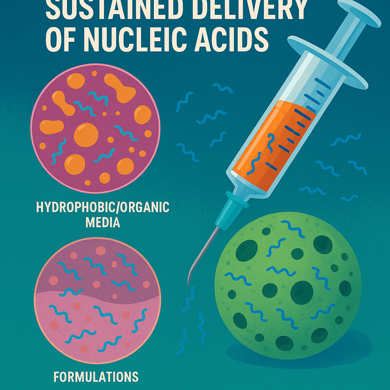 Some scientists have tried making “depots” — gels or solid forms that hold onto the medicine and let it out slowly. These can be made from special sugars, fats, or polymers that are safe in the body. The idea is that the depot sits at the injection site and slowly releases the medicine over days or weeks. But this approach has its own problems. Many gene medicines are not stable in these depots, especially if water is present. The gene medicines can degrade or clump together, losing their activity.