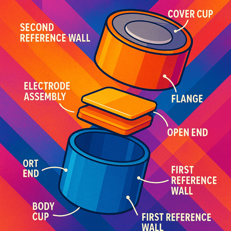 Most traditional battery cases are made by joining a body (the main cup) with a cover (a lid that closes the open end). Sometimes, a “flange” is formed at the joint — basically a ridge or lip where the two parts meet. In many old designs, this flange sticks out sideways, making the battery a little wider but not really helping with swelling in the direction where it actually occurs.