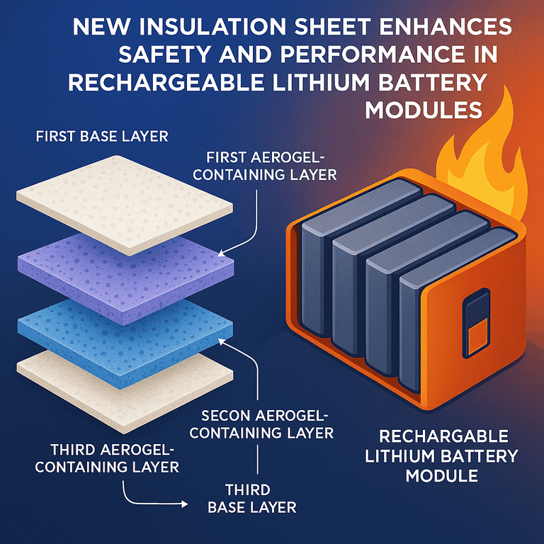 The new heat insulation sheet for rechargeable lithium batteries brings together the best features of old and new materials. It blocks heat very well, handles pressure as batteries swell, and is tough enough to last a long time. By carefully stacking aerogel, fibers, binders, and mica, the sheet meets the growing need for safer, more reliable batteries in everything from cars to phones.