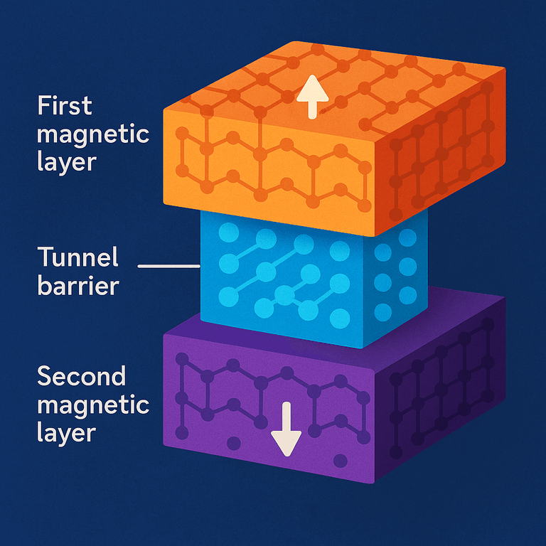 The barrier in the middle is usually magnesium oxide (MgO). MgO has worked well for years because it gives a big difference in resistance between the states, which is called “TMR” (tunnel magnetoresistance). The bigger the TMR, the easier it is to tell a zero from a one.
