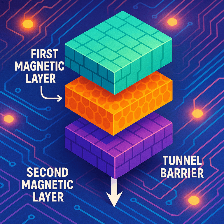 A basic MRAM cell has two magnetic layers and a thin barrier in between. One layer’s magnetization is fixed; the other can be changed (it’s called the “free layer”). When the magnets are parallel, the resistance is low. When they are anti-parallel, the resistance is high. This difference lets you store zeros and ones.