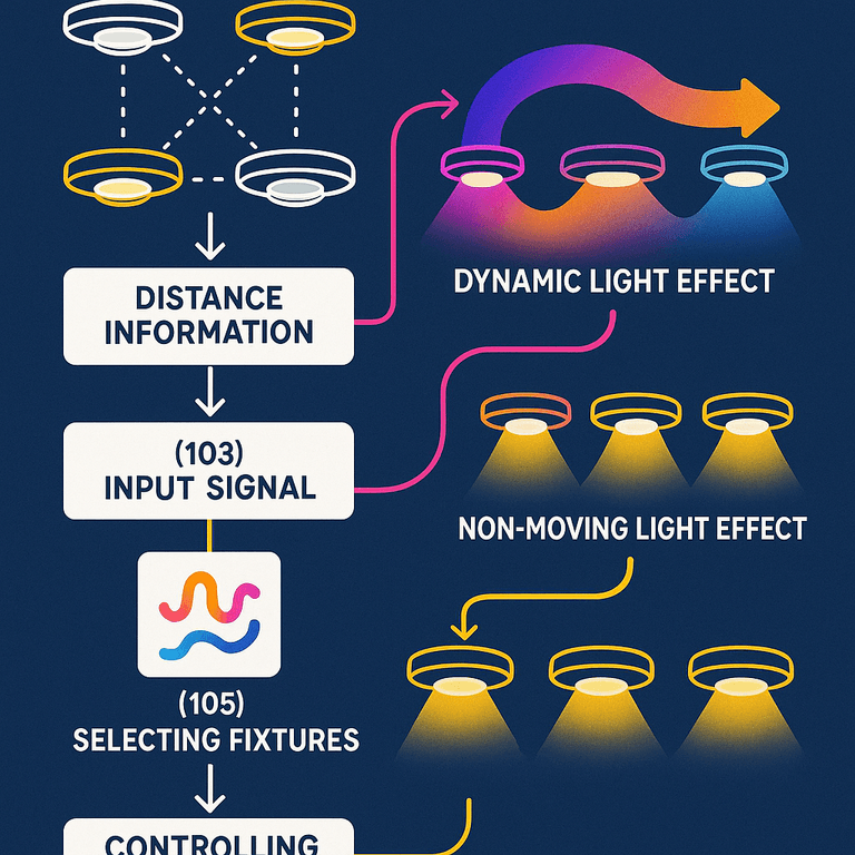 This is where the patent under review takes a big step forward. It proposes a system that does not treat all lights the same. Instead, it “knows” where lights are, what type they are, how far apart they are, and even where the user is. It uses this knowledge to pick which lights should join each effect, how strong the effect should be, and how to adjust it as things change. This is a big improvement over systems that just send the same signal to every light or that require the user to set everything up by hand.