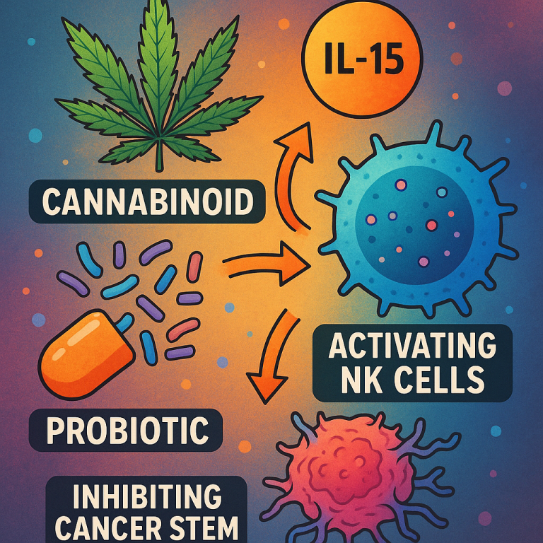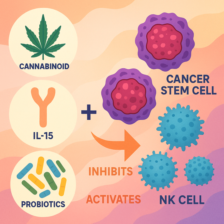 Older patents and papers talk about using IL-15 to help NK cells, or using probiotics for general health, or using cannabinoids for pain or other symptoms. But none describe this exact combination for attacking cancer stem cells and boosting NK cell activity at the same time.