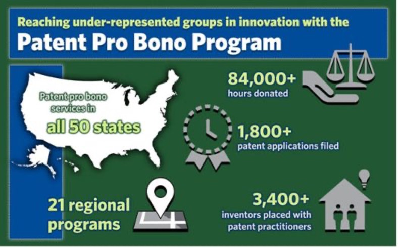 To meet this mandate, the US Patent and Trademark Office runs the Patent Pro Bono Program that matches patent lawyers with financially under-resourced inventors and small businesses for the purpose of securing patent protection.